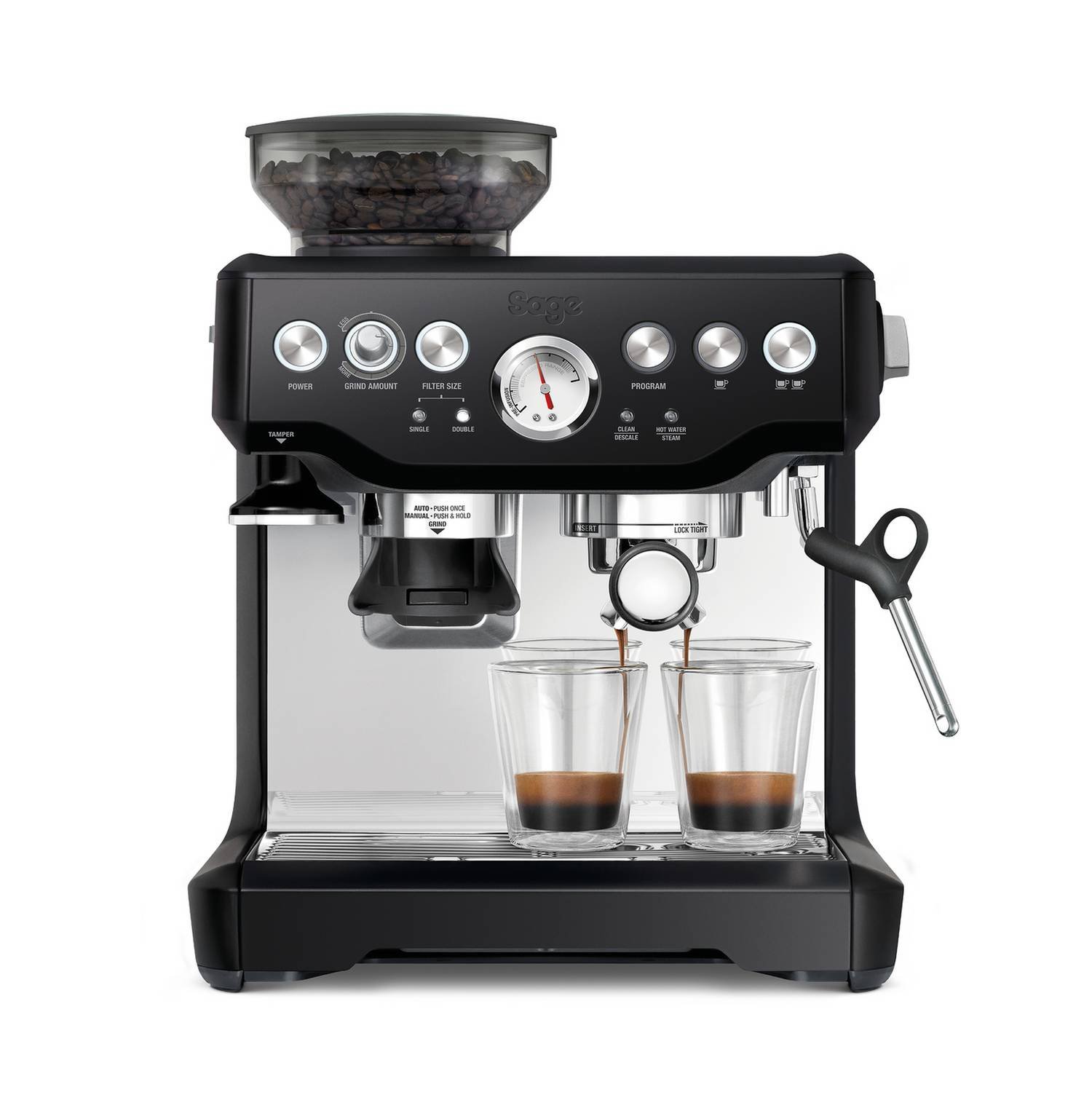 - Manual steam wand with adjustable temperature